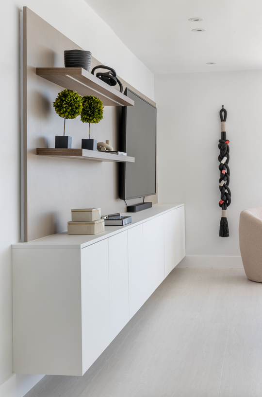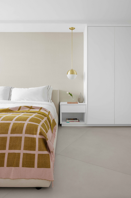 Flooring: Porcelain Tile + SPC vinyl Tile Color: Como Albar 48x48" SPC Color: Gilbar Interior Designer: Interiors by Maite Granda Photographed by: Kris Tamburello